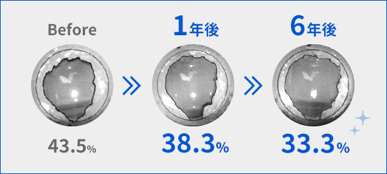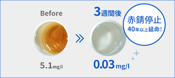 給水配管内の新しい赤錆の発生・腐食進行を止め既存の赤錆を硬く結晶密度の高い不動態の黒錆に還元することにより配管内を保護・強化し、また赤錆閉塞を縮小改善させ、その建物を建て替えるまで使える給水配管にすることが可能となります。各国の特許も取得し多くのホテル・病院・マンションなどに採用されている装置がNMRパイプテクター®です。